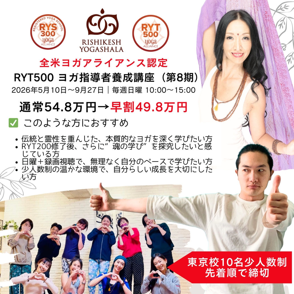 RYT200とのセット申込割引:RYT200とRYT500を同時にお申し込みの方は、総額から20万円引き + 教材費無料特典付き✨